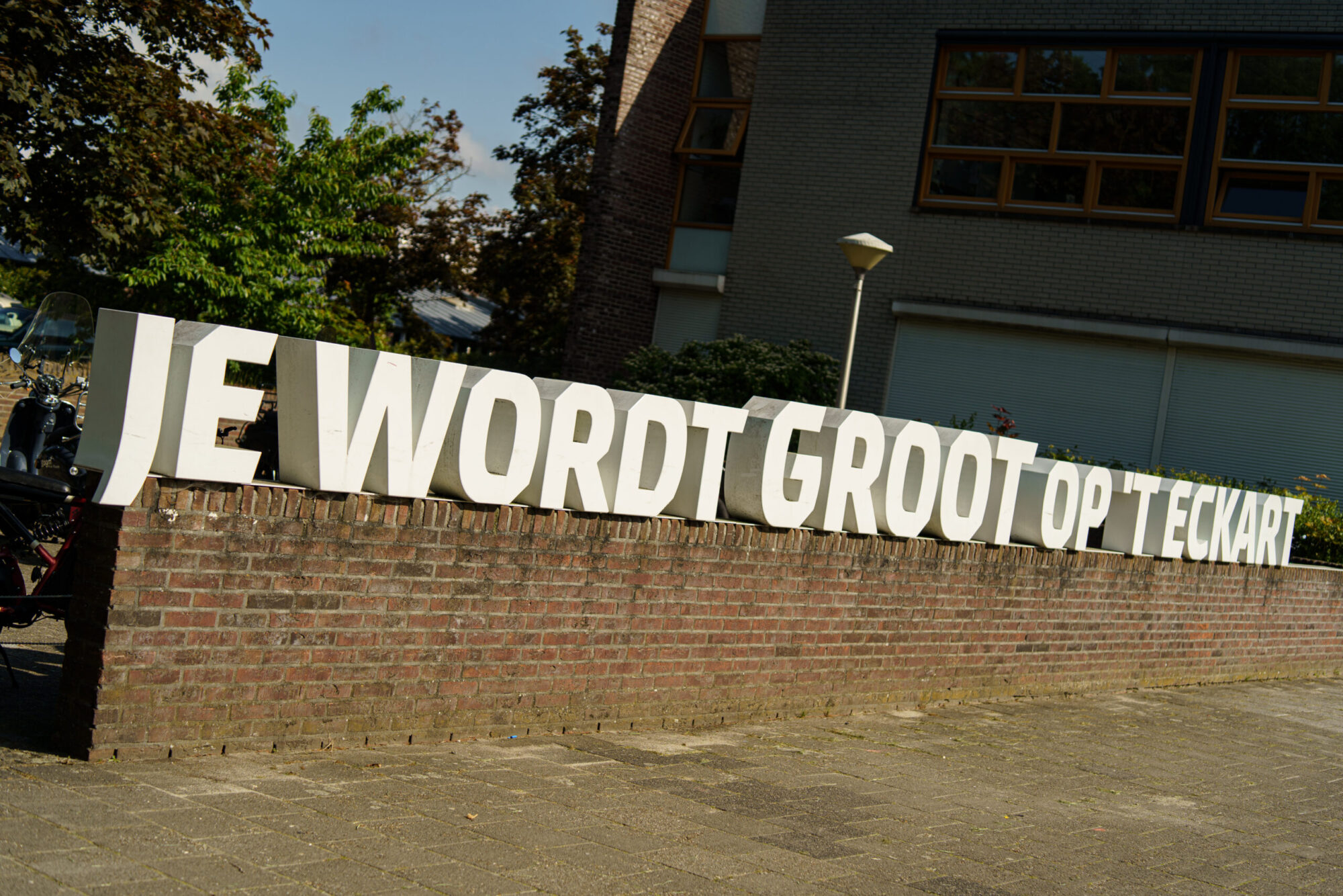 De school bestaat uit verschillende gebouwen op een groot terrein; daardoor voelt het Eckart een beetje als een dorp. Het centrale plein met gezellige bankjes en veel groen versterkt dat gevoel. Voor brugklassers